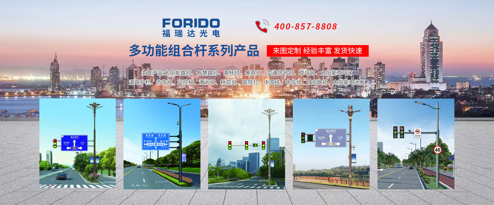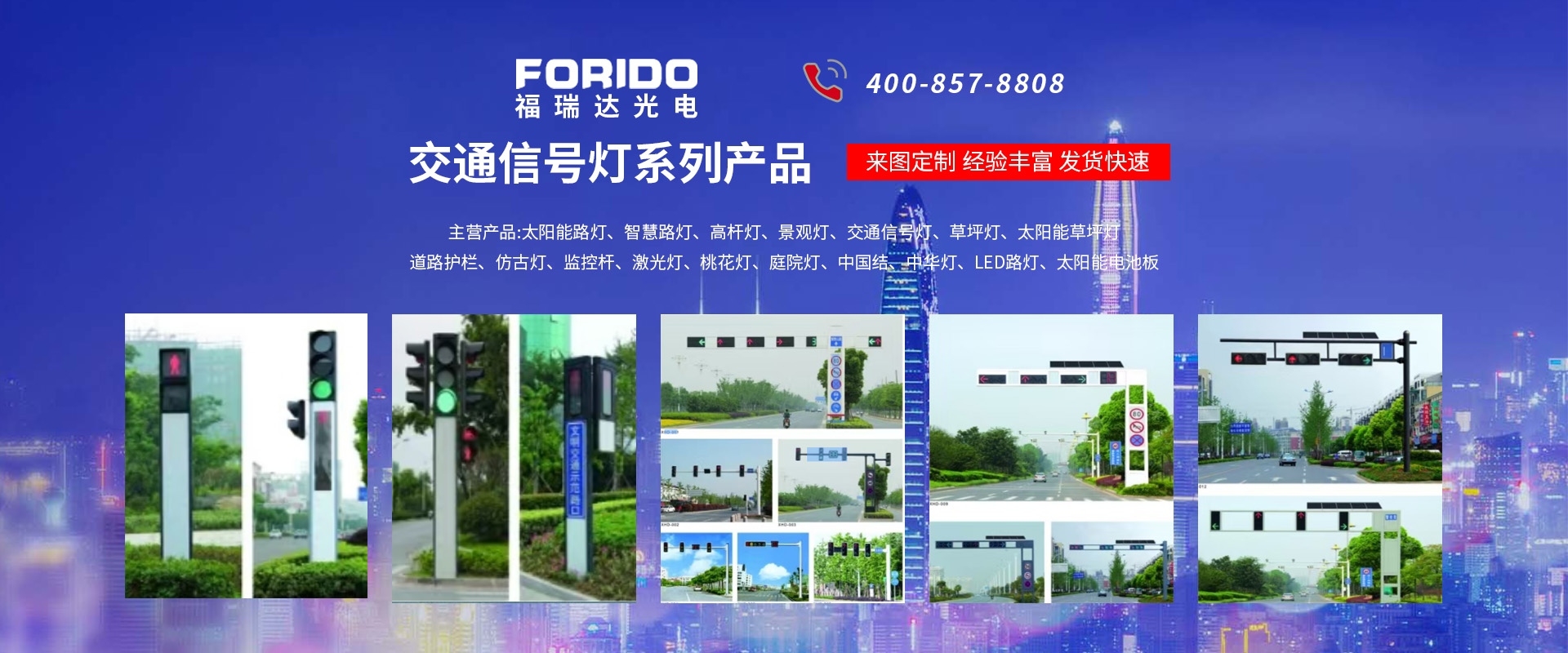 揚(yáng)州福瑞達(dá)光電科技有限公司位于淮左名都?xì)v史文化名城、中國路燈制造基地?fù)P州市北郊菱塘工業(yè)園,公司占地面積76000平方米,注冊資金10518萬元,擁有高級技術(shù)嫻熟的員工280多人,擁有大型折彎機(jī)、激光切割、數(shù)控注塑機(jī)、壓鑄機(jī)、自動埋弧焊、氣焊、彩色粉末靜電噴塑等大型自動化設(shè)備,我公司是一家集設(shè)計、研發(fā)、生產(chǎn)、銷售、施工安裝服務(wù)為一體的戶外交通照明產(chǎn)品制造商,主要生產(chǎn)智慧路燈、太陽能路燈、LED路燈、高桿燈、景觀燈、交通信號燈、交通標(biāo)志牌、通信鐵塔、路跨鋼結(jié)構(gòu)、公交站臺、太陽能光伏組件、景點(diǎn)亮化、樓宇亮化工程的設(shè)計施工等。公司秉承開拓創(chuàng)新、銳意進(jìn)取、精誠服務(wù)的企業(yè)精神,堅持以“誠信為本、技術(shù)為先、服務(wù)是金”的合作理念,我們憑借先進(jìn)的制造工藝、優(yōu)質(zhì)的產(chǎn)品質(zhì)量、合理的市場價格和完善的售后服務(wù)贏得了廣闊的市場和客戶的信賴。  我公司已通過ISO9001質(zhì)量體系認(rèn)證、ISO14001環(huán)境管理體認(rèn)證,CQC產(chǎn)品認(rèn)證,中國節(jié)能產(chǎn)品認(rèn)證,通過“CCC”強(qiáng)制性產(chǎn)品認(rèn)證,具有市政總承包,照明,交安,設(shè)計等資質(zhì)···